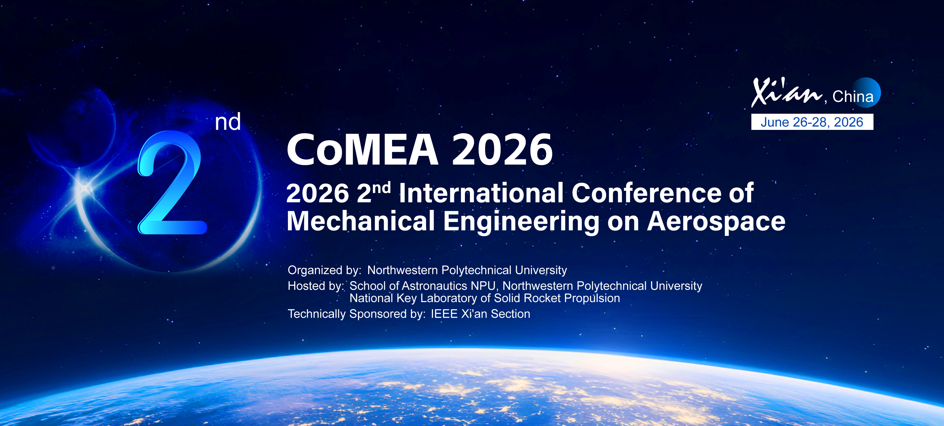 2026 2nd International Conference of Mechanical Engineering on Aerospace (CoMEA 2026) is scheduled to be held in Xi'an, China on June 26-28, 2026.